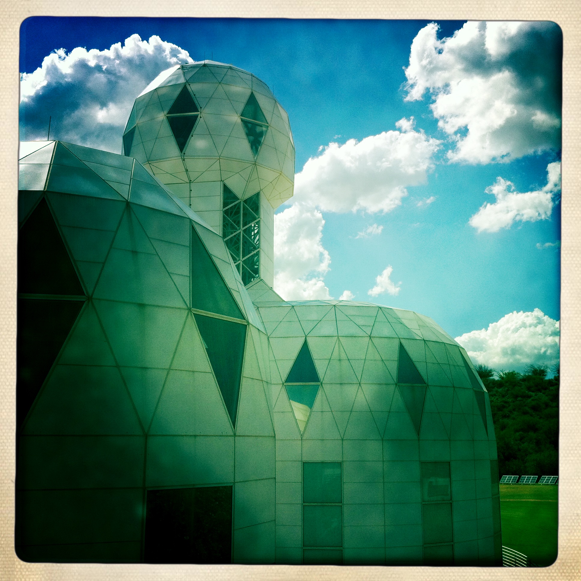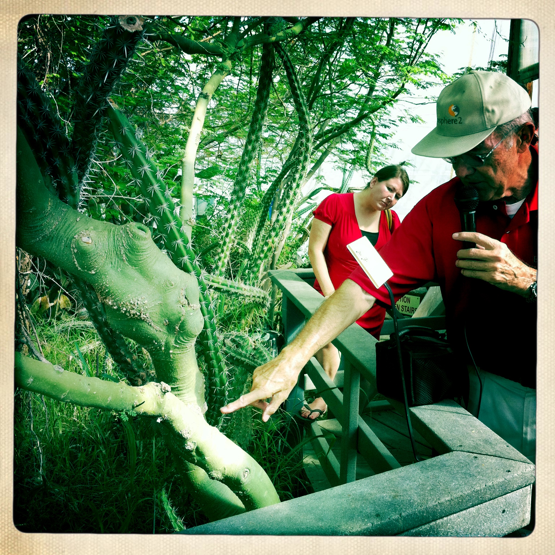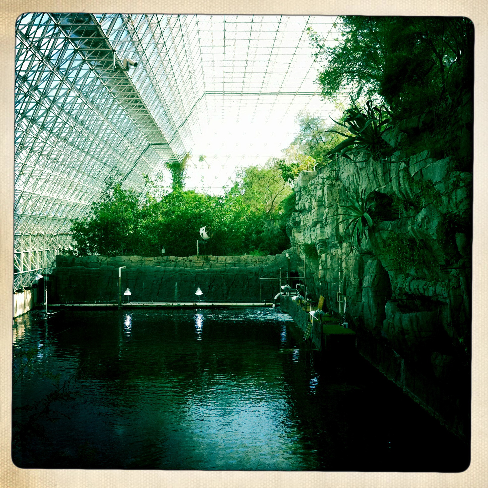 “Biosphere 2 is a 3.15-acre (12,700 m2) structure originally built to be an artificial, materially-closed ecological system in Oracle, Arizona (USA) by Space Biosphere Ventures. Constructed between 1987 and 1991, it was used to explore the complex web of interactions within life systems in a structure that included five areas based on natural biomes and an agricultural area and human living/working space to study the interactions between humans, farming and technology with the rest of nature.”