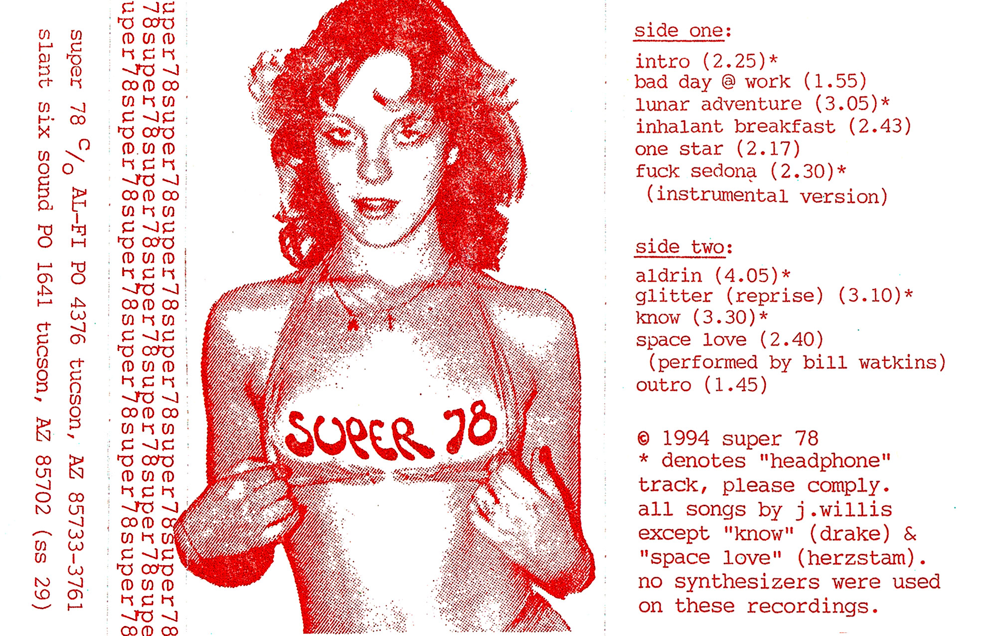 - Super 78 – “Super 78” (ss-29) – (Slant Six Sound, 1994, CASS) – Graphic Design