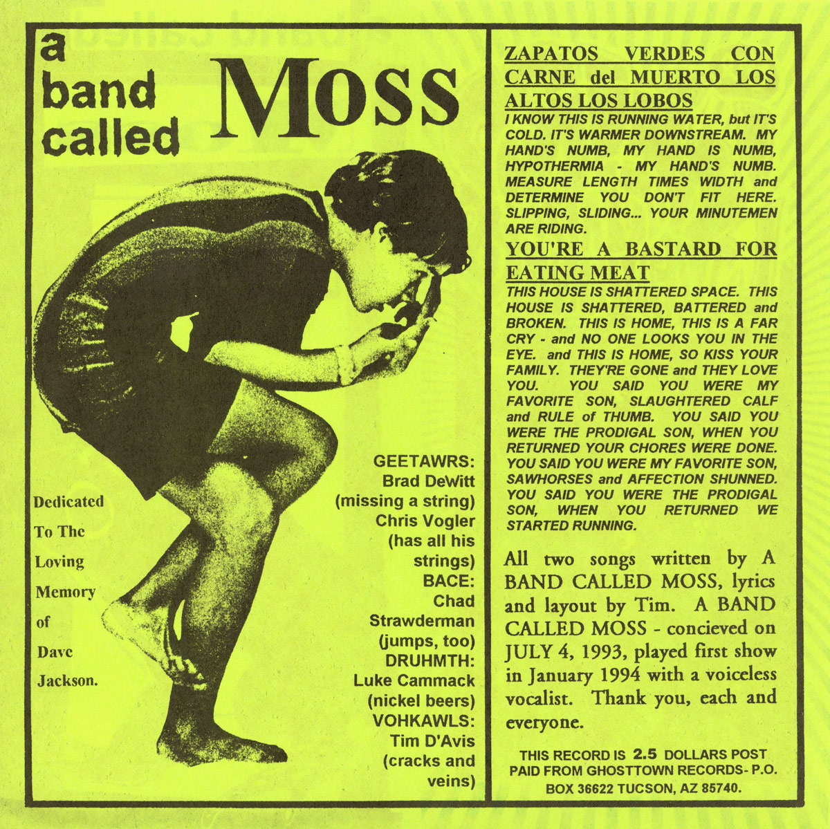 - Weird Lovemakers / A Band Called Moss – Split Single Back Cover (Ghost Town, 1994)
