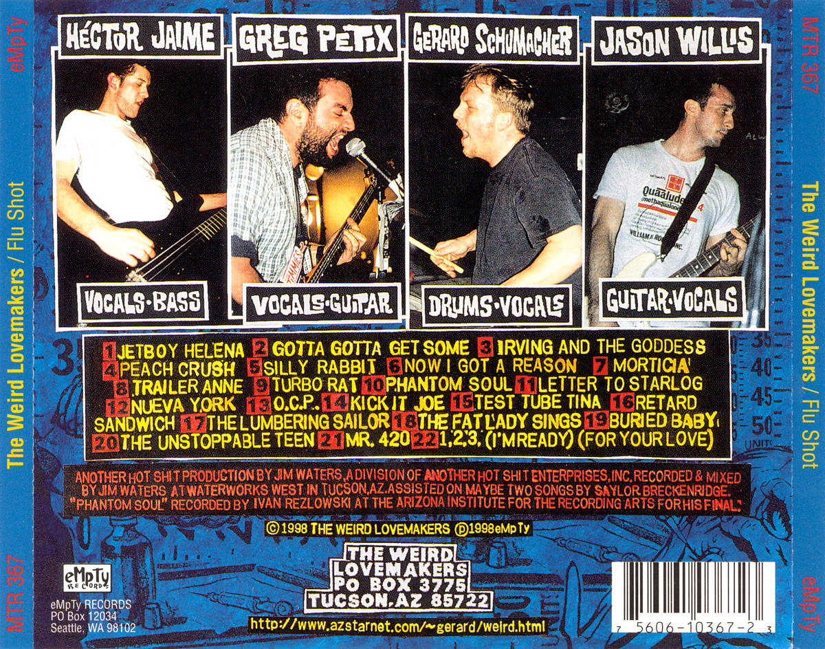 - Weird Lovemakers – Flu Shot – CD Back Cover (eMpTy Records, 1998)