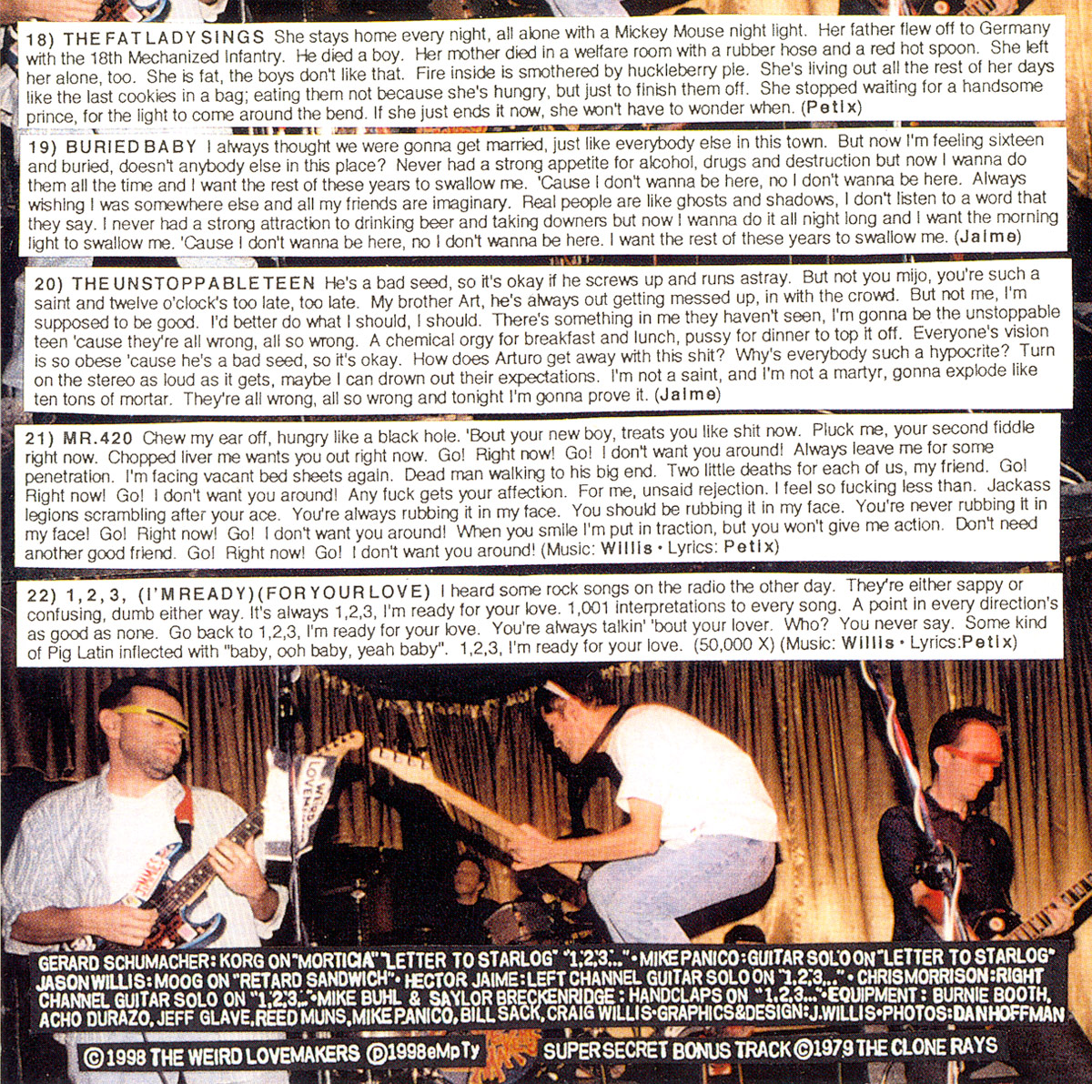 - Weird Lovemakers – Live: Bigger than a Cookie, Better than a Cake – CD Booklet Interior (eMpTy Records, 2000)